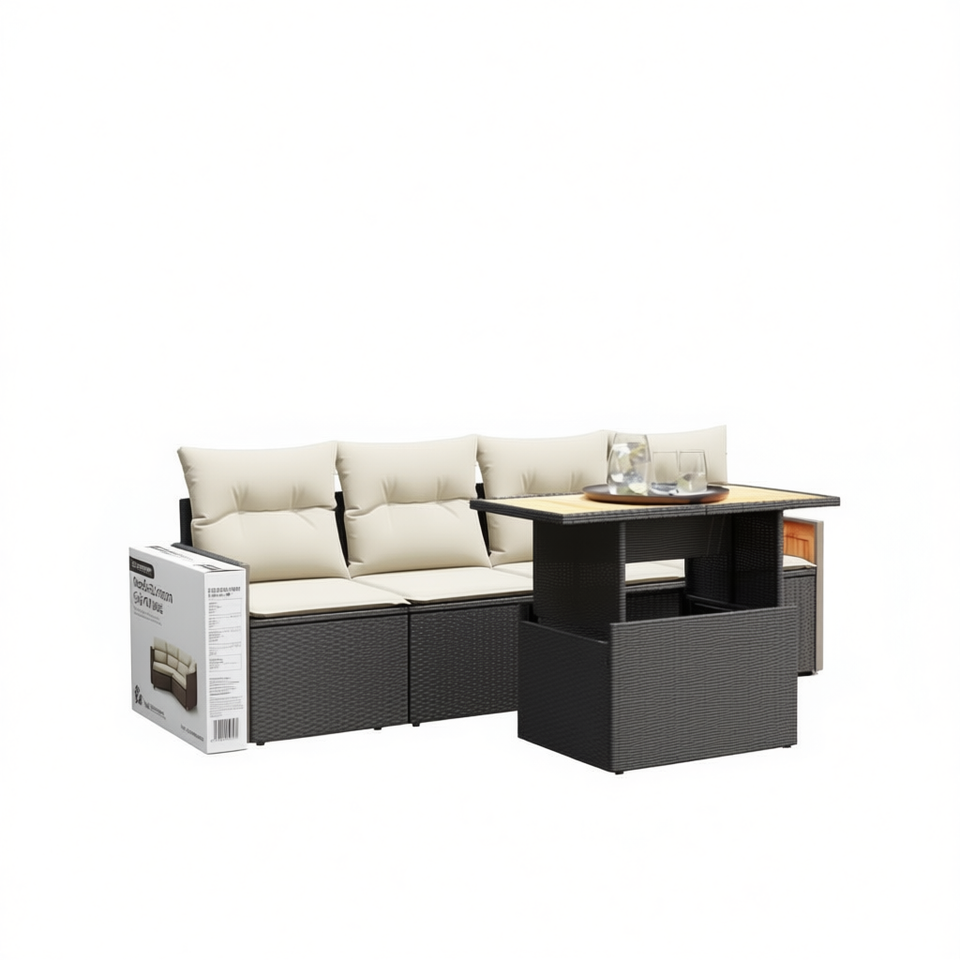 Ensemble de canapés de jardin en rotin noir 4 places avec rangement, mobilier d'extérieur au design contemporain
