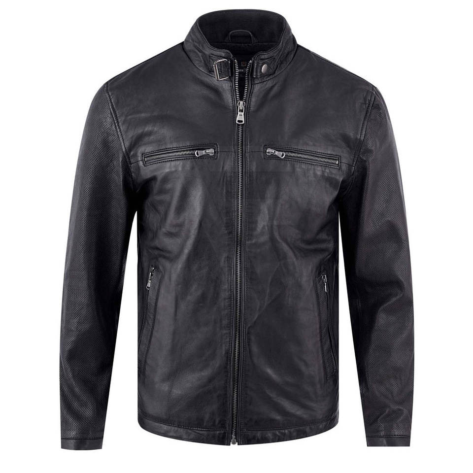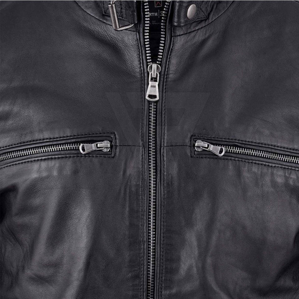 Noir en cuir véritable D-Ride Moto DRM-102 hommes col montant élégant poches avant léger respirant Slim Fit veste d'hiver