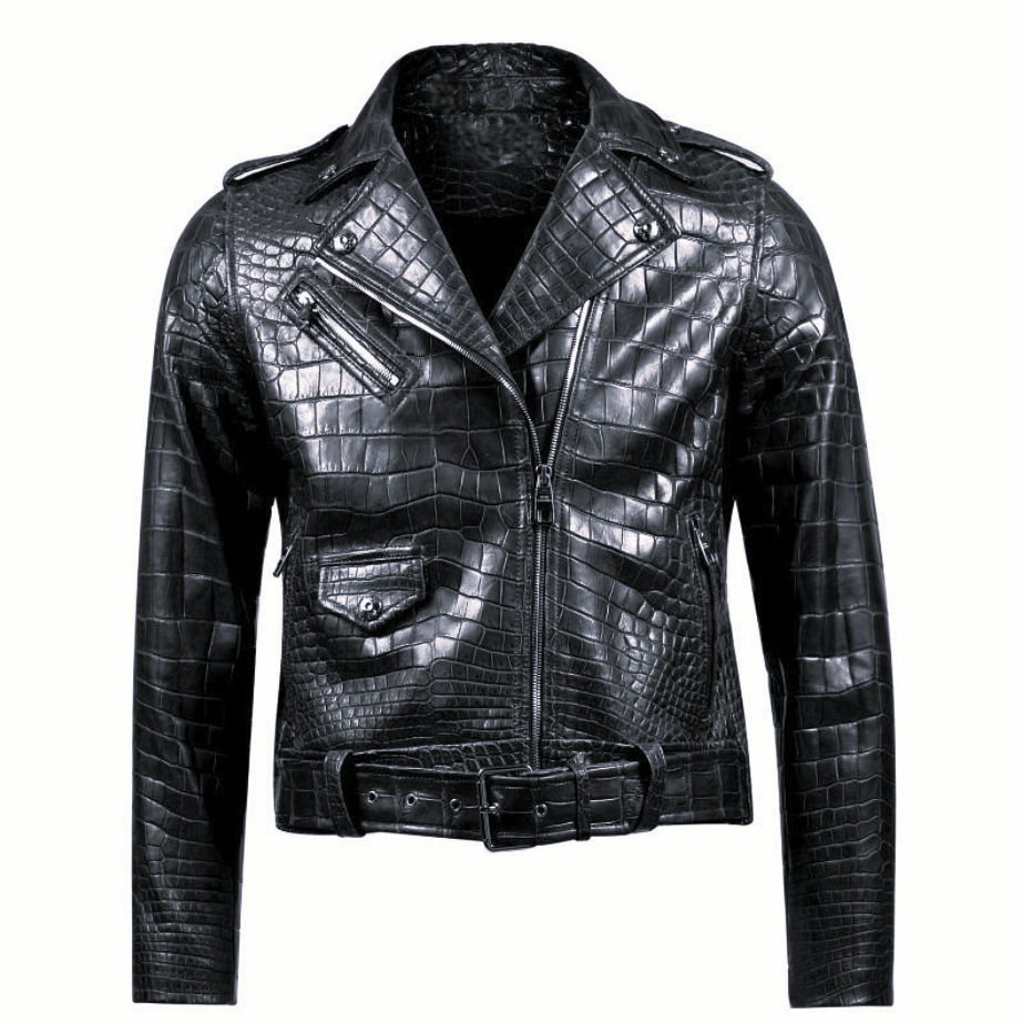 Veste en cuir de vache véritable noire avec fermetures éclair brillantes de style moto, imperméable et coupe-vent pour un usage unisexe et tendance