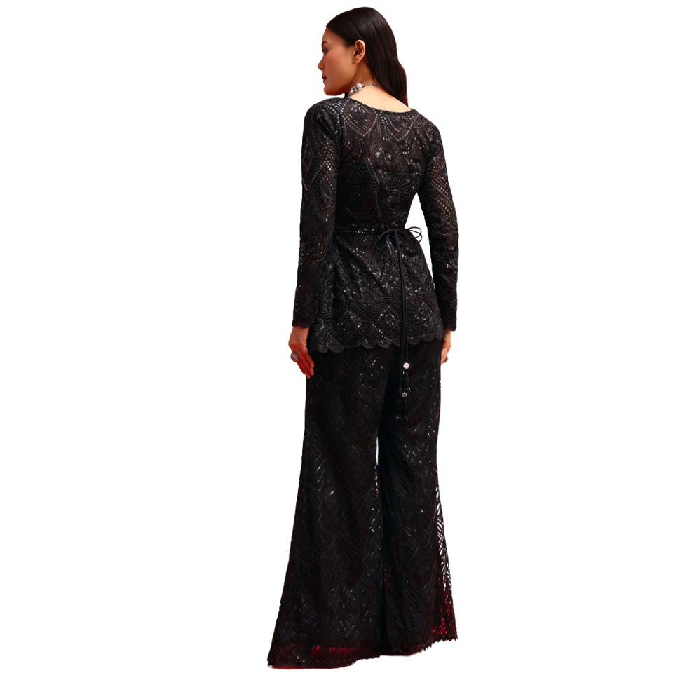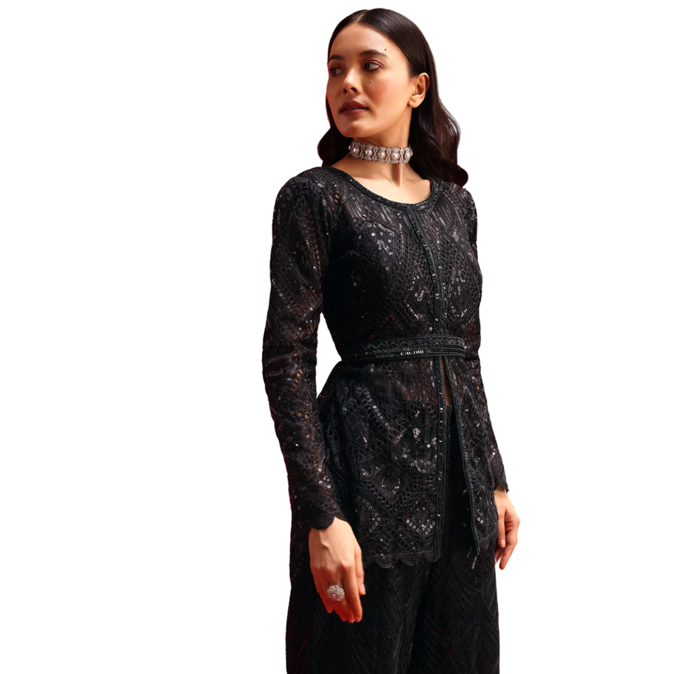 Black Georgette Silk Embroidered Kurta Palazzo Set Modern Design Wholesale Women Ethnic Apparel OEM Clothing Factory Supplier