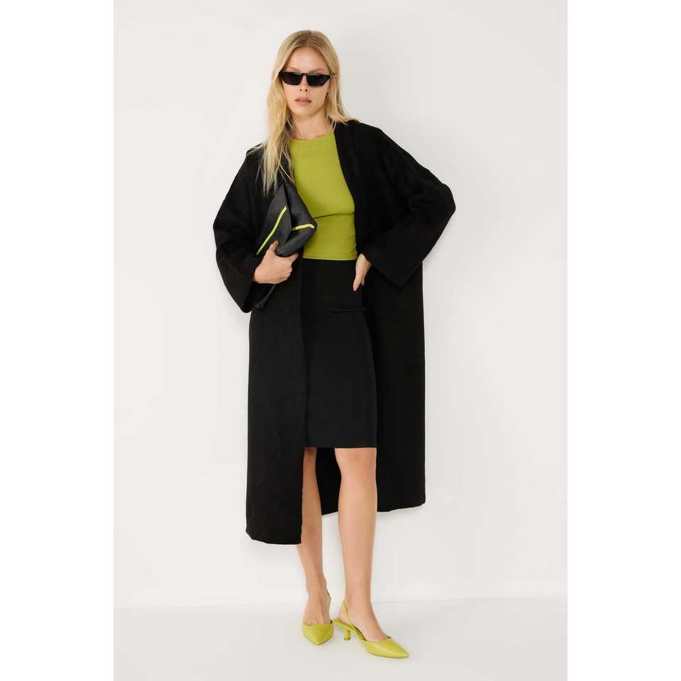 Cardigan long en tricot noir style glamour, décontracté, crocheté, imprimé automne et motif uni, décoration boutonnée, longueur courte