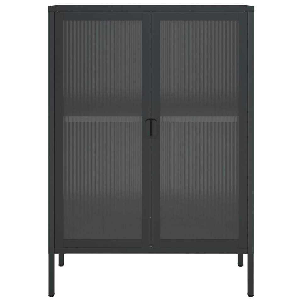 Black Glass and Steel 29.5"x13.8"x41.3" Sideboard