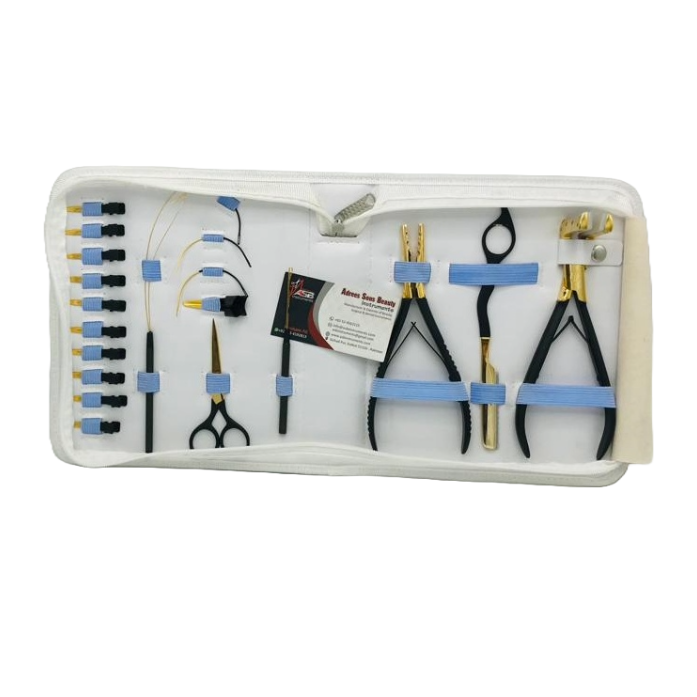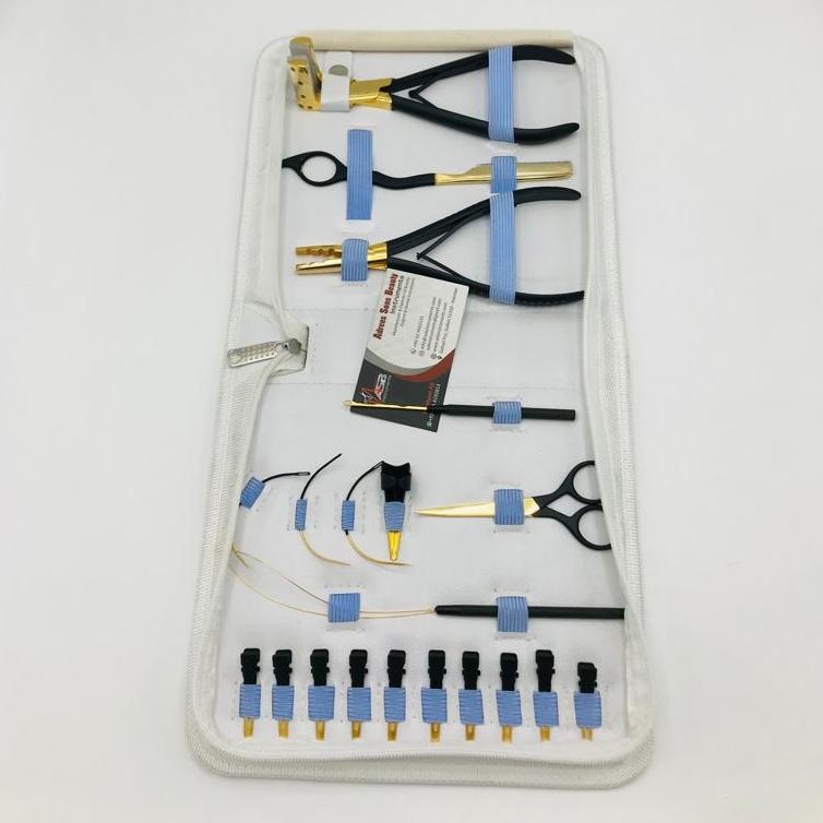 Professional Hair Extension Tools Kit Black Gold Micro-Link Pliers Clips Scissors Loop Tape Plier Stainless Steel High Quality
