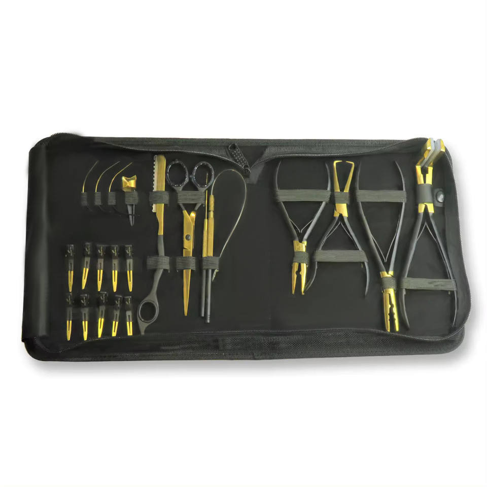 Pinces d'extension de cheveux pour salon professionnel noir or outilsNom