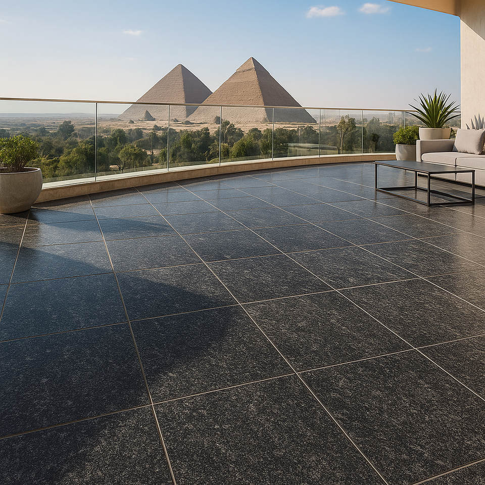 Granite noir pour l'extérieur, design rustique, finition martelée, écologique, découpé sur mesure pour les applications de cuisine et de villa par Cliostones