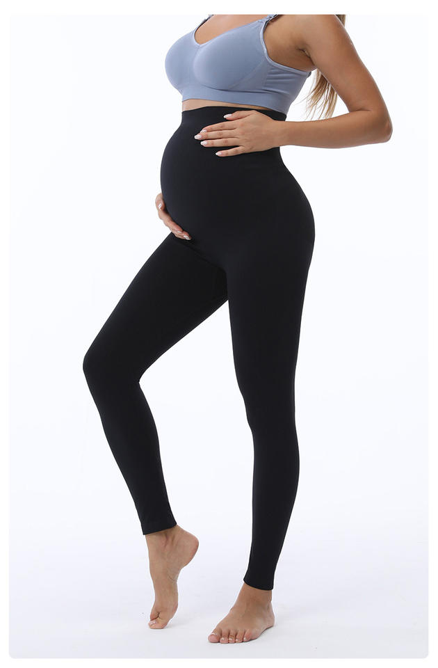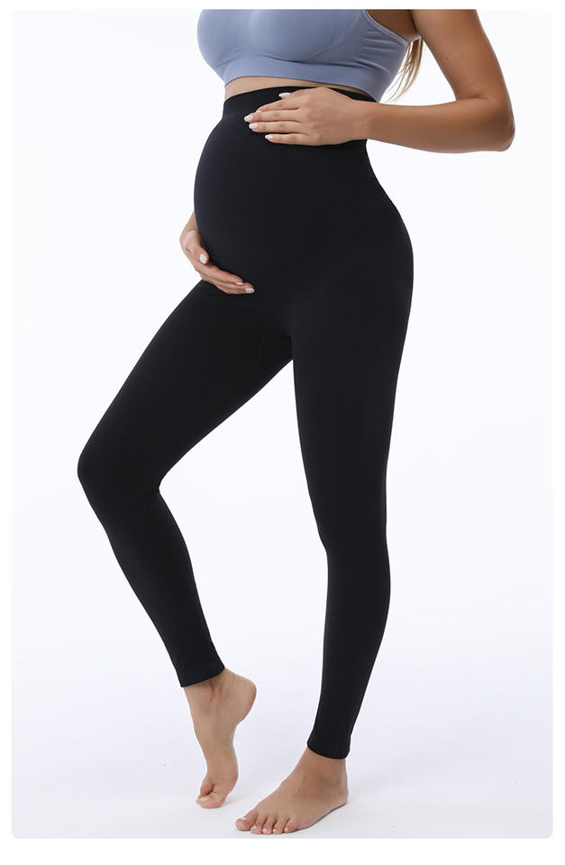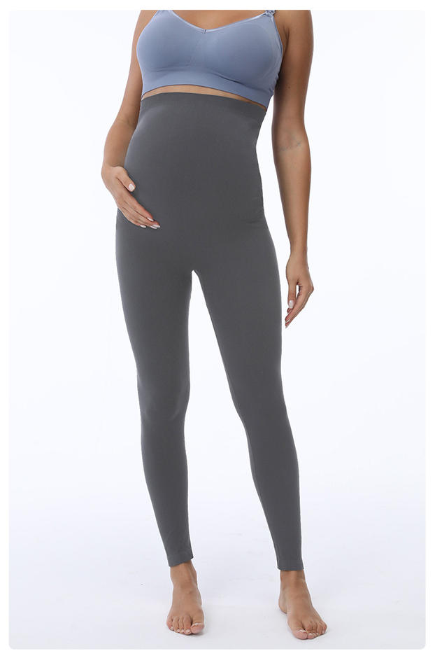 Black Gray Full Pregnancy Leggings - High Waist Maternity Activewear, Belly Support Tight Fit Base Layer Pilates Yoga Pants