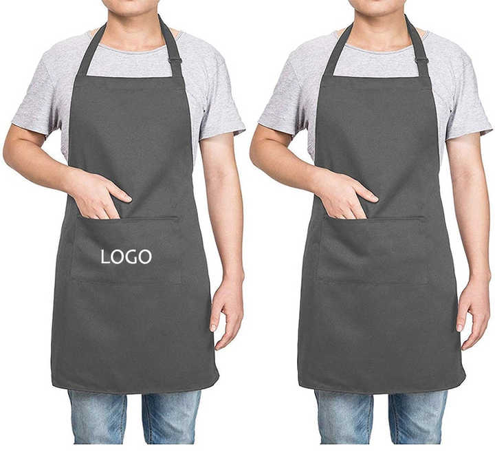 Noir Gris Plain Design Lin Polyester Hommes Femmes Protection Cuisine Nettoyage Tablier de Cuisine avec Impression de Logo Personnalisé
