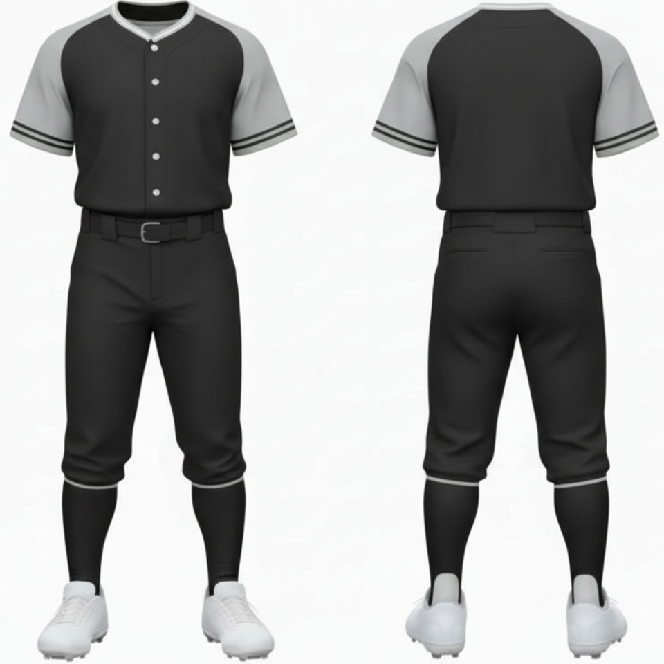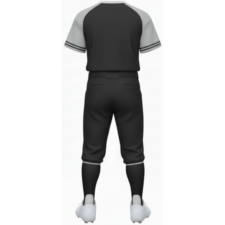 Ensemble de tenue de baseball raglan noir et gris, maillot d'équipe de performance uni avec passepoil contrasté et pantalon de sport assorti