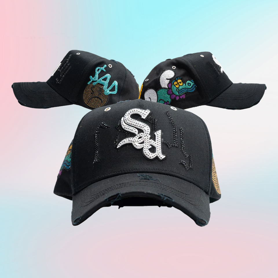 Casquette de baseball noire à broderie étoile H en strass, motif nuage, imprimé dessin animé, tendance