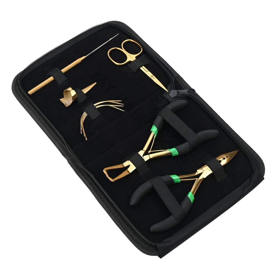 Ensemble d'outils pour la pose d'extensions de cheveux noirs avec pince à retirer les perles