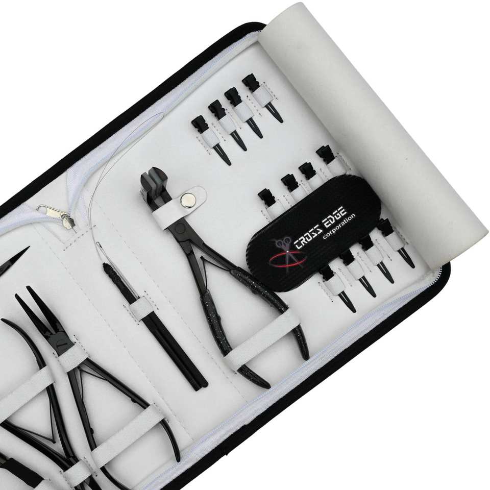 Nom du produit:Kit d'outils pour extensions de cheveux noirs avec pince à perles courbée