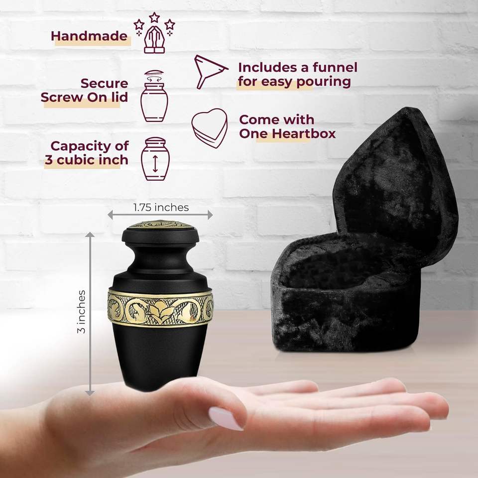 Black Handcrafted Mini Urn Small Heart-Shaped Cremation Ashes Keepsake Box Best Decorative Funeral Supplies