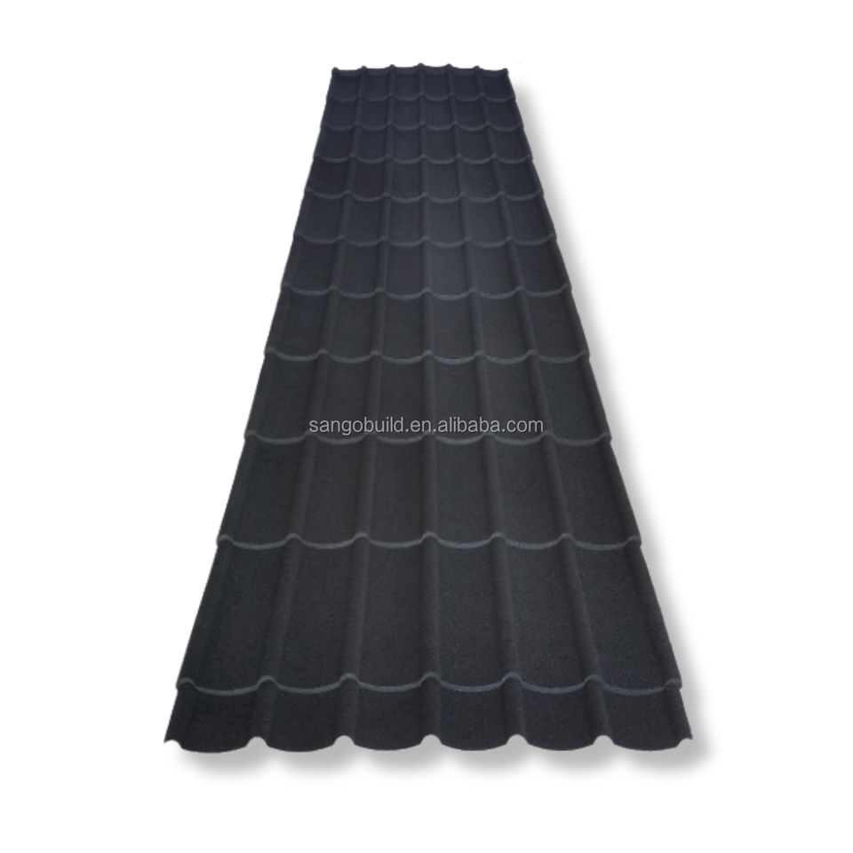 Panneaux de toiture en métal revêtus de pierre, résistants aux intempéries, haute résistance, installation facile, grande couverture, couleur noire