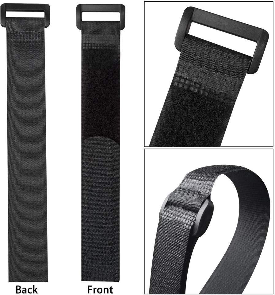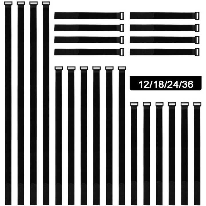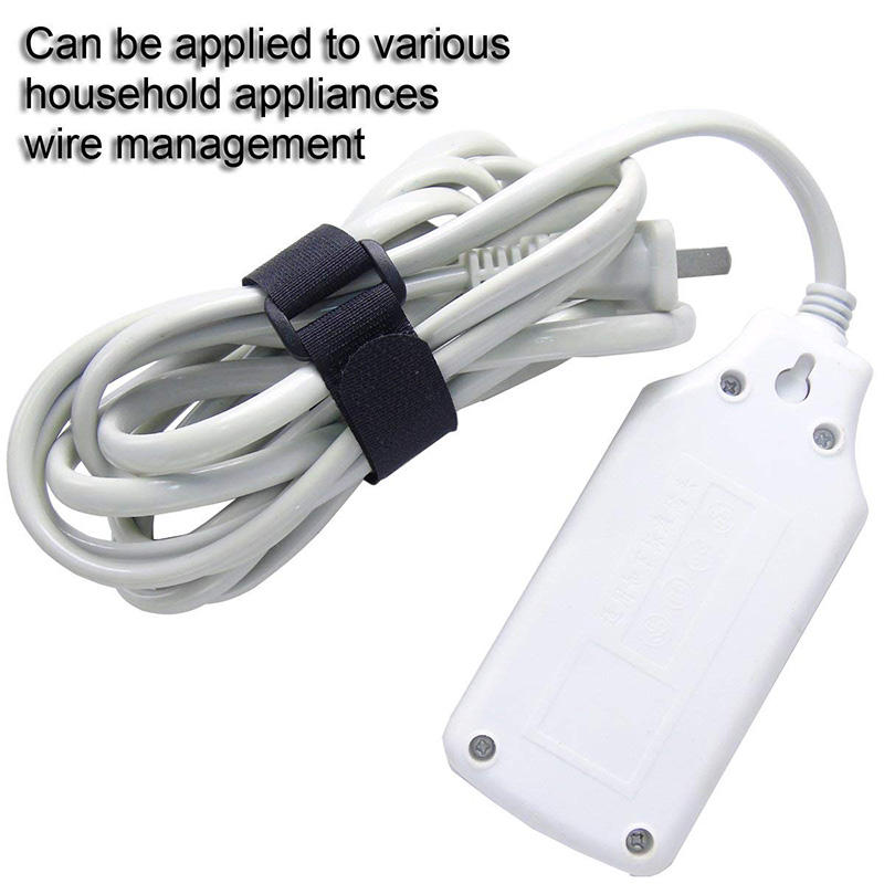 Sangles d'arrimage de câble réutilisables à crochet et boucle noire Enrouler autour des cordons Organisateur de fil Sangles