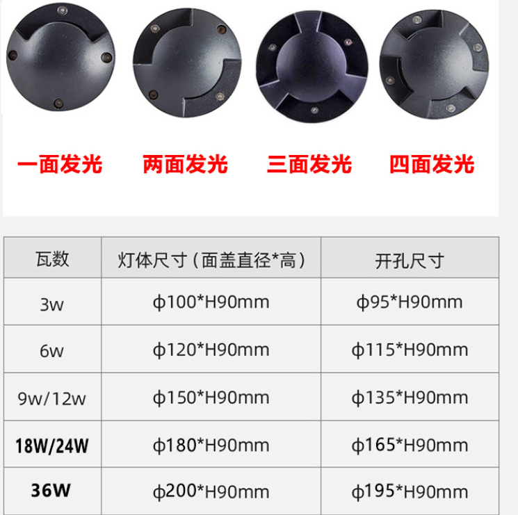 Lampe LED encastrée noire IP65 en aluminium pour terrasse, jardin, parc, place publique, sol et marches extérieures