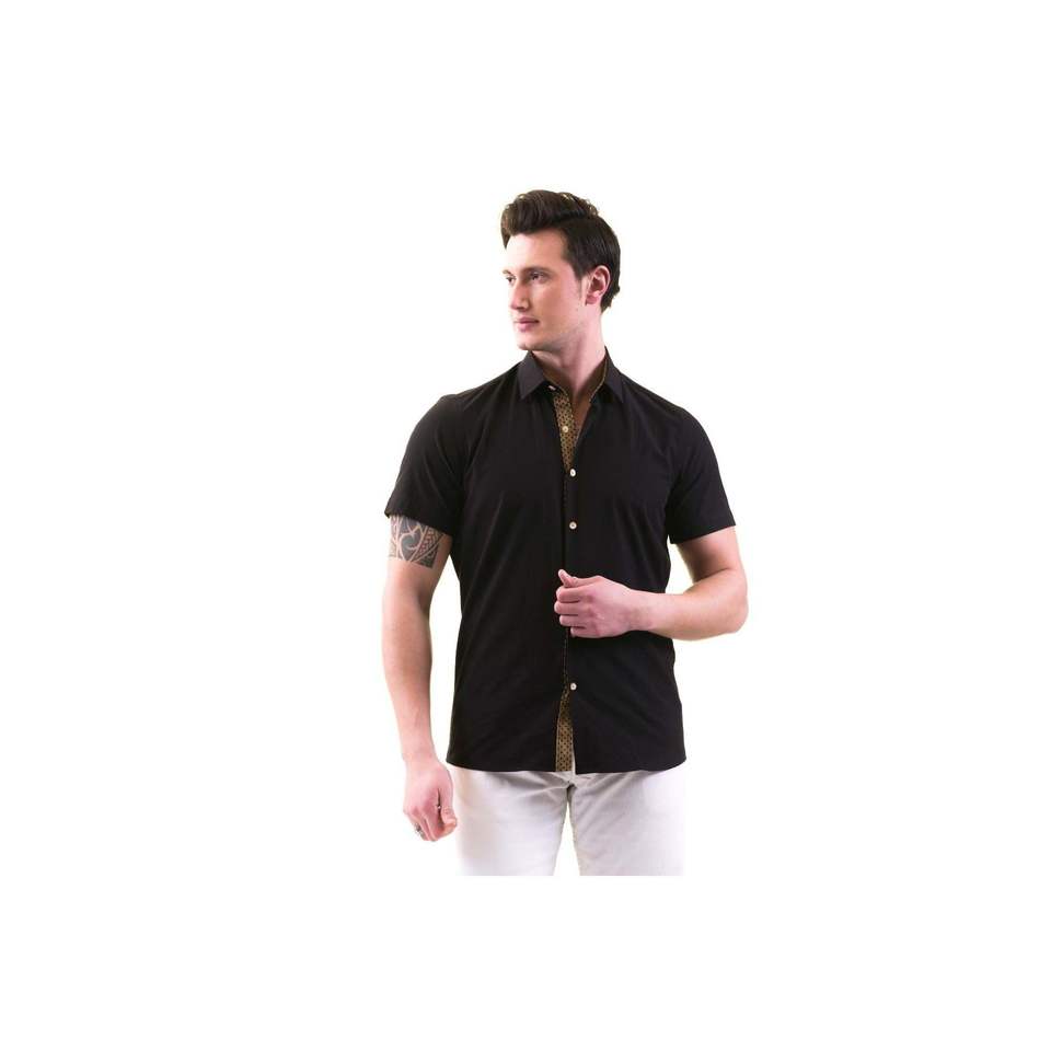 Col intérieur noir et patte de poitrine Détail nid d'abeille Chemise en coton à manches courtes coupe ajustée