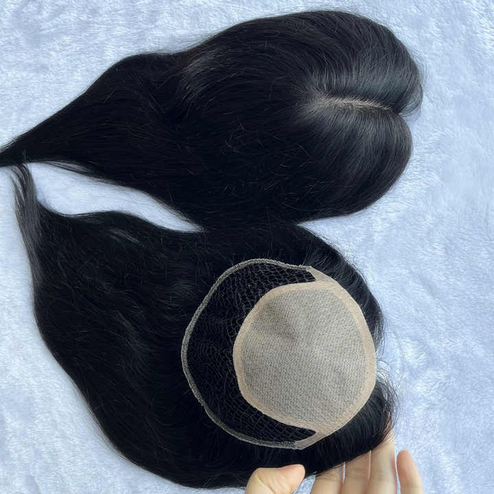 Toupet en cheveux humains chinois avec dessus en soie noire