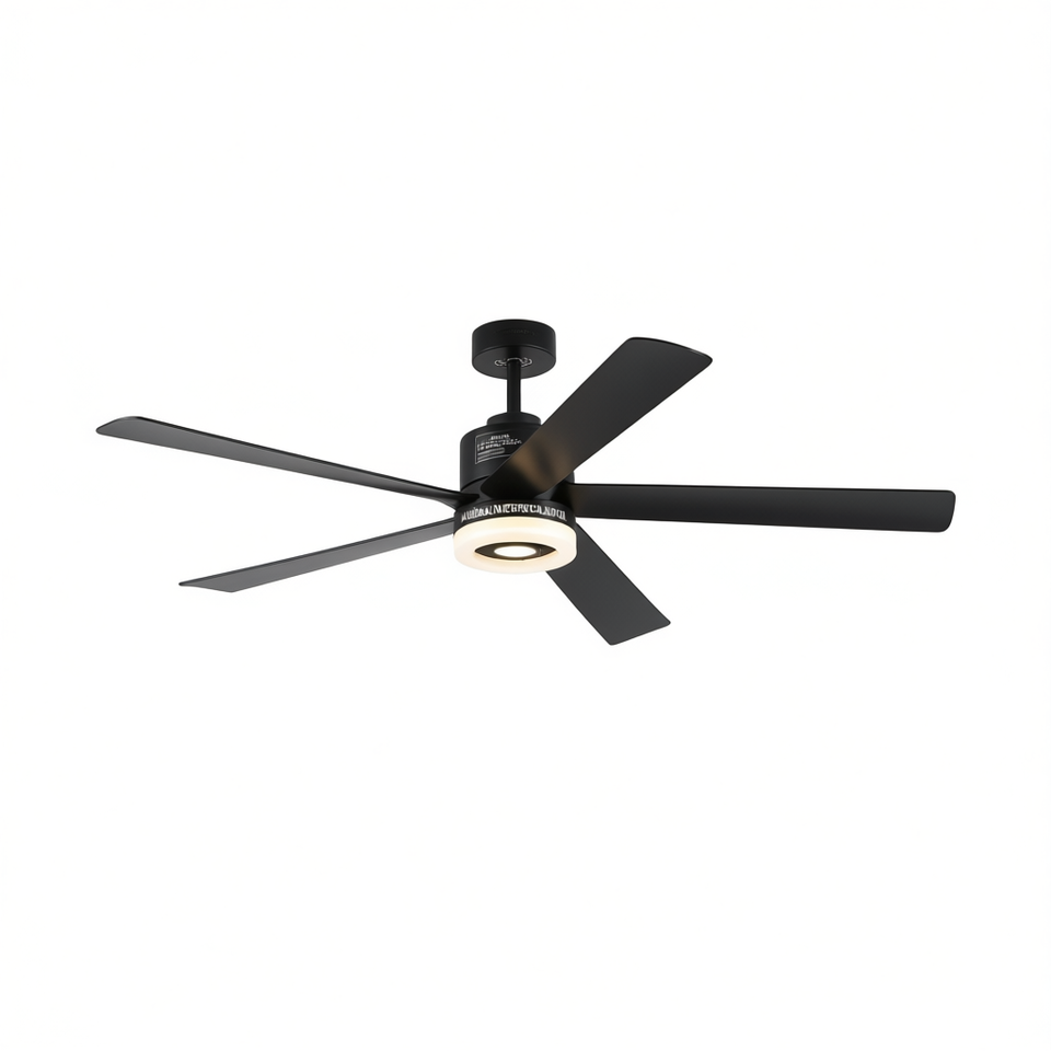 Ventilateur de plafond LED en fer noir de 65 pouces, 5 pales, moteur DC, télécommande, design moderne, fonctionnement silencieux, éclairage pour salon