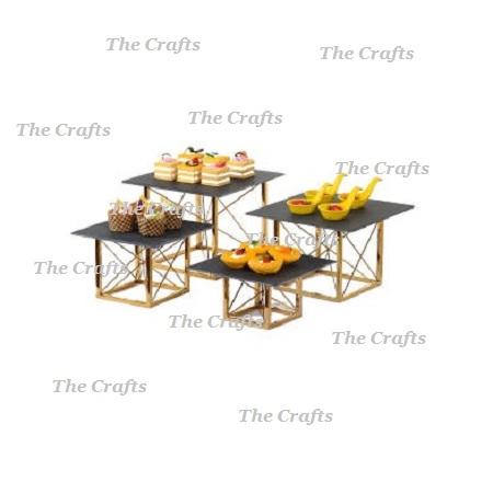 Présentoir de service de gâteau de taille et de forme personnalisées de rehausseurs de fruits de buffet de fer noir à un prix abordable