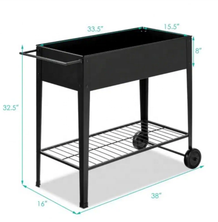 Nom du produit:Lit surélevé en fer noir avec étagère de rangement et 2 roues