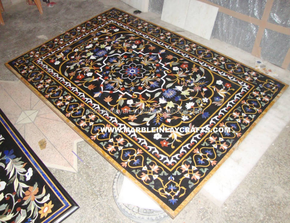 Nom du produit:Dessus de table de salle à manger incrusté fait main en marbre italien noir