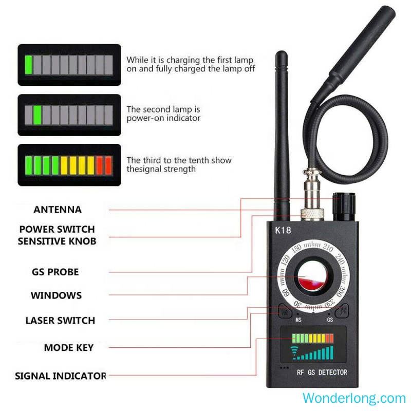 Détecteur de caméra K18 noir sans fil, appareil photo, alarme RF, détecteur Audio GSM, détecteur GPS, Bug, 4 pièces