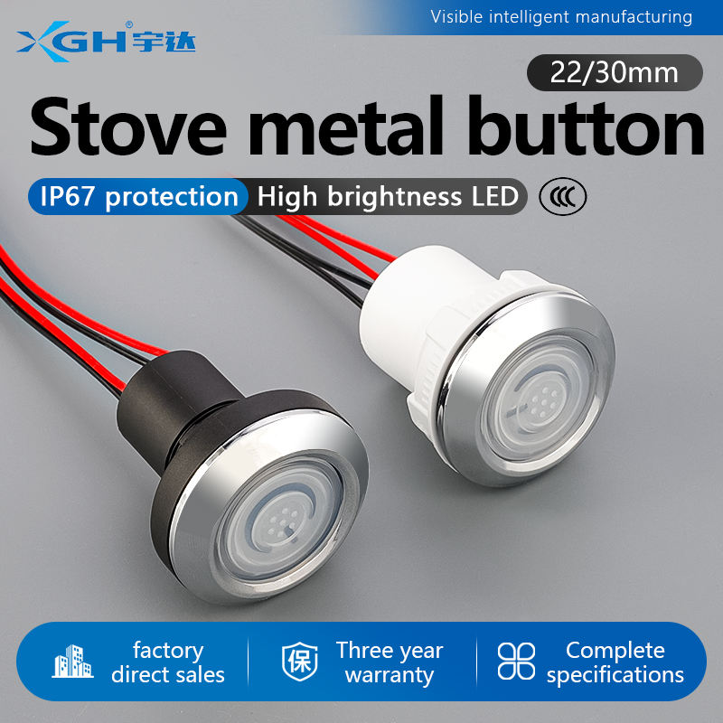 Bouton d'allumage de cuisinière en céramique noire, anneau métallique 22/30 mm, étanche et résistant à l'huile, 220 V, autobloquant/auto-réinitialisant
