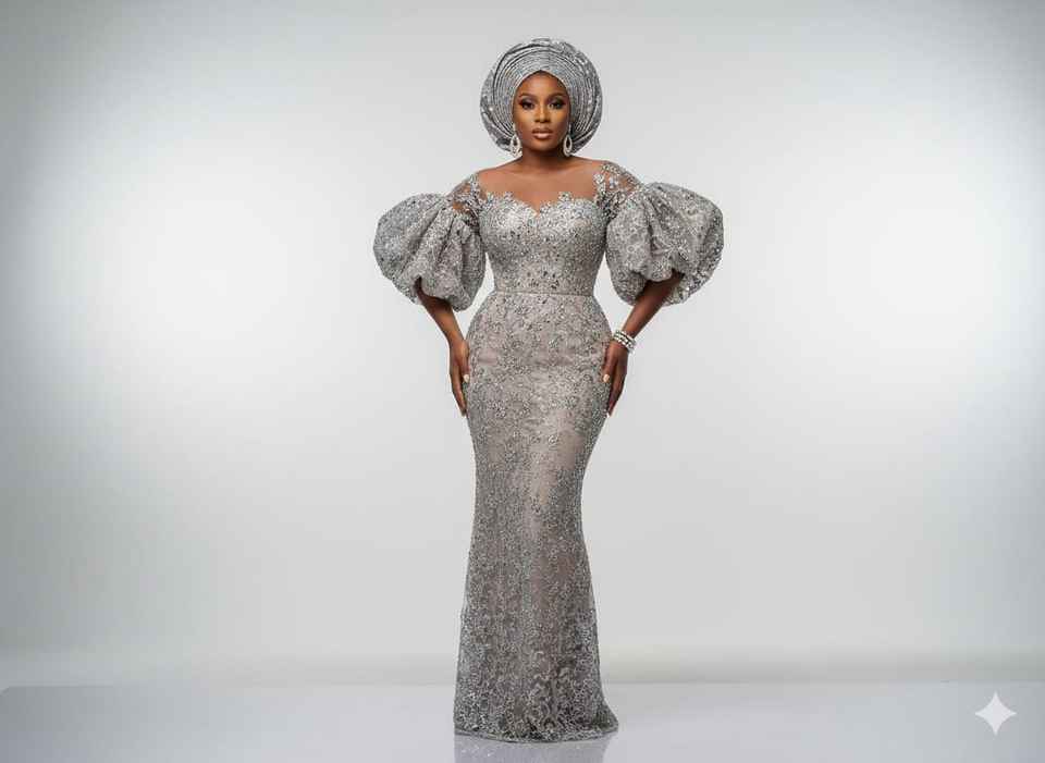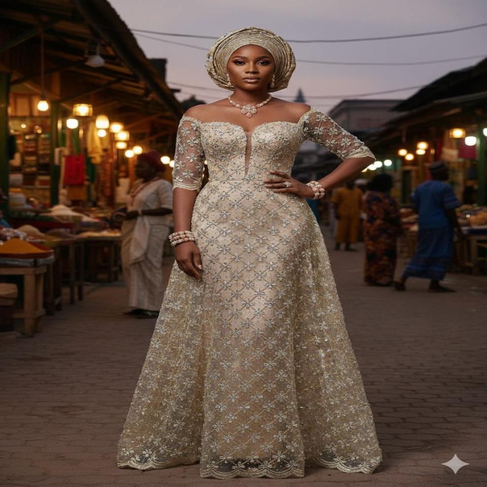 Black Lace Fabric Royalty Luxurious Trendy Floral Design Sequin & Stone Beaded 100% Polyester Nigerian Wedding Partywear Dress