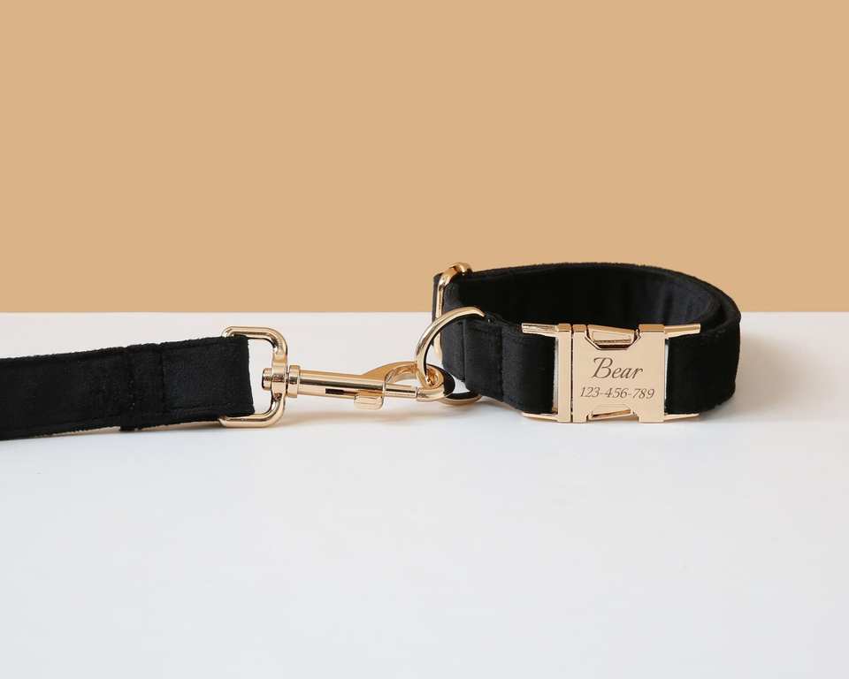 Cadeau d'arc en laisse noire, chien personnalisé Veet avec nom, collier et laisse de chiot garçon personnalisé