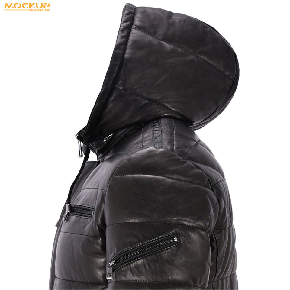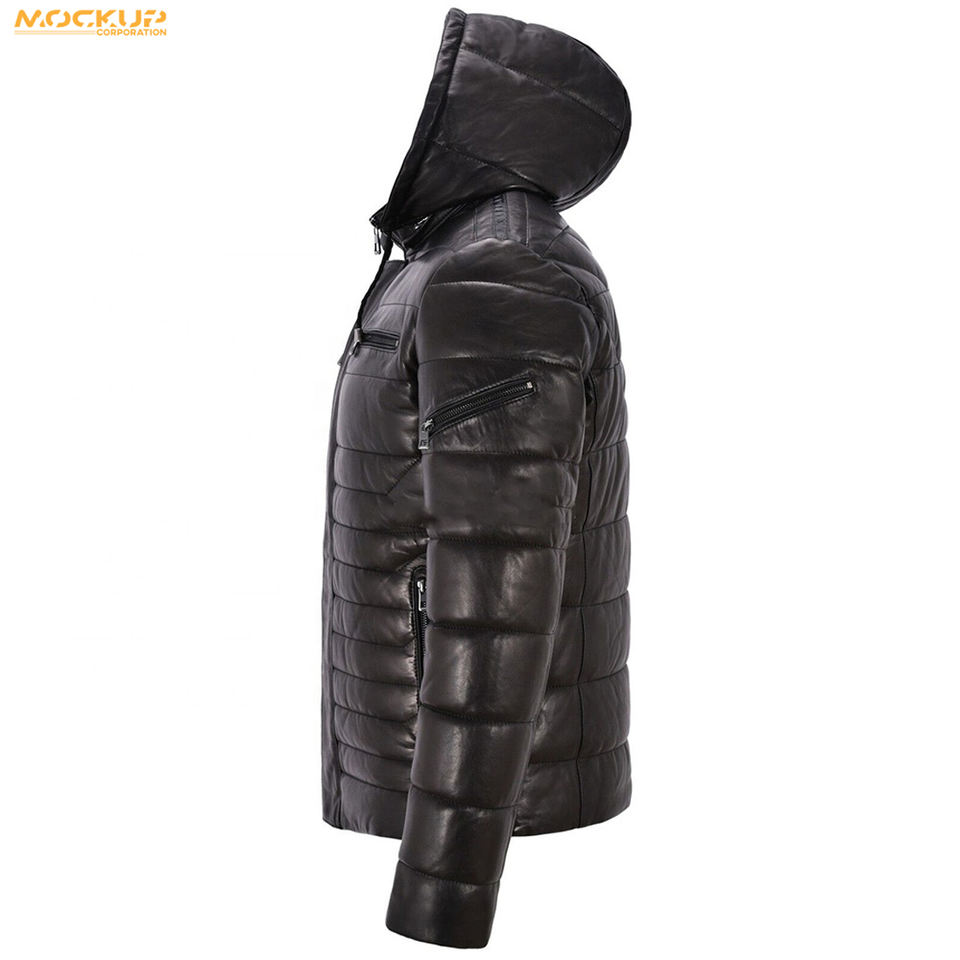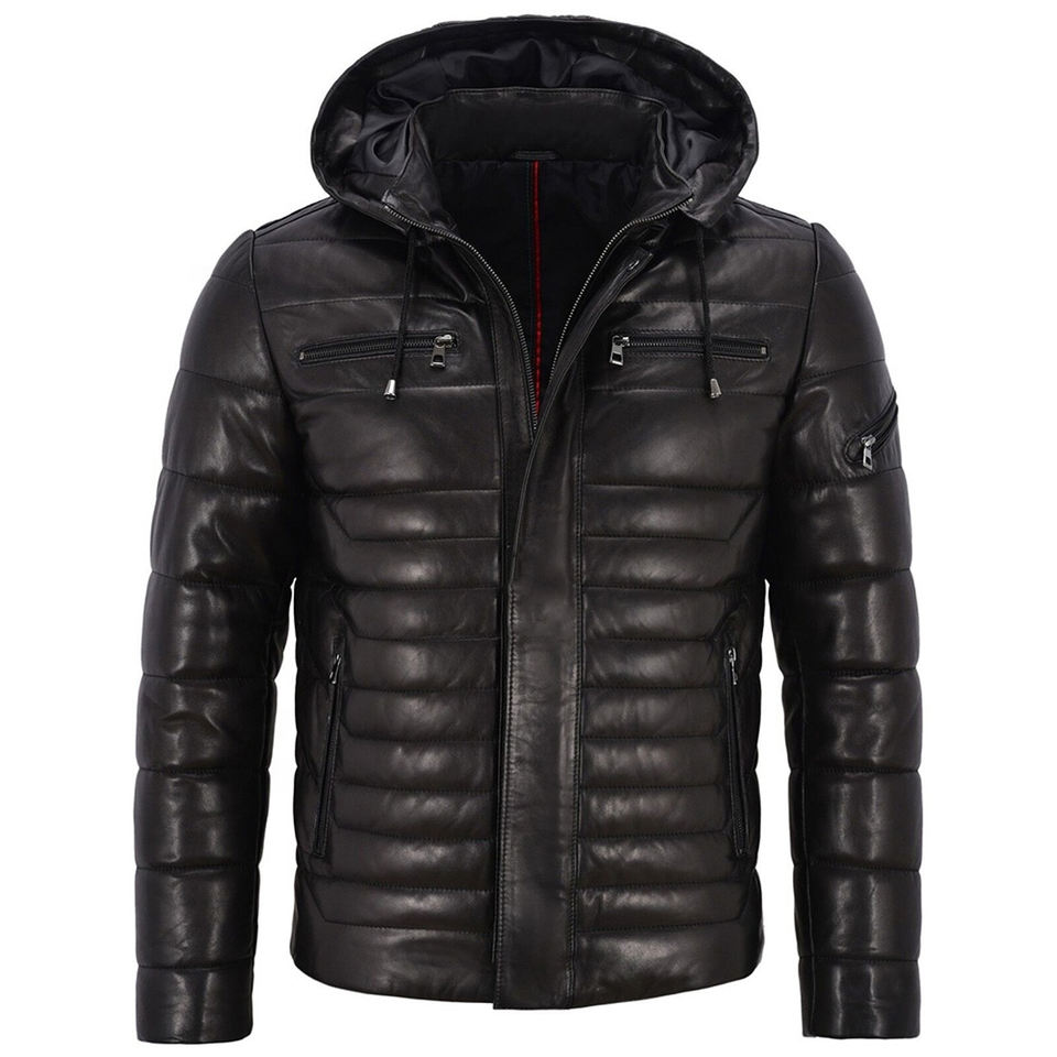 Doudoune en cuir noir avec style de veste en cuir matelassé-Veste en cuir de mouton véritable Homme Pas Cher Prix