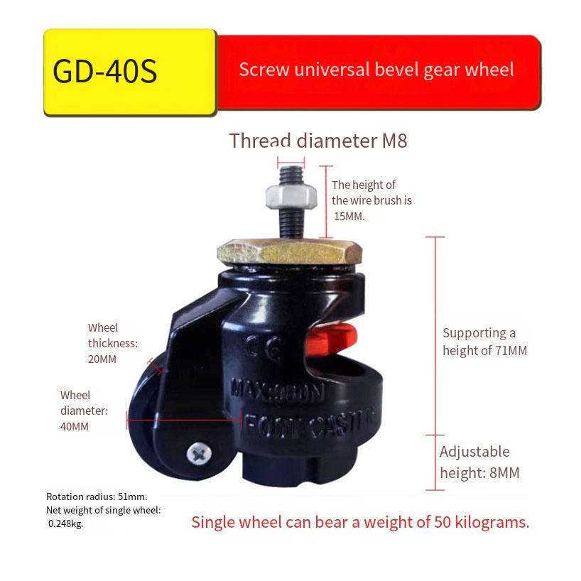 Roue de nivellement noire pour établis, roulettes robustes de 40 mm, pivotantes de 6 pouces, roulettes en nylon de 4 pouces