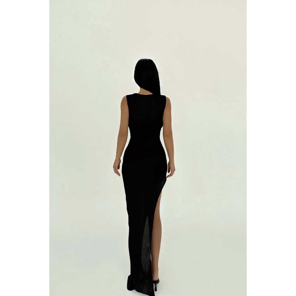 Black Luxury Evening Dress for Women XS Size Floor-Length Ball Gown with Deep Slit and Empire Waistline for Prom