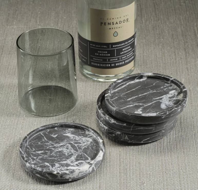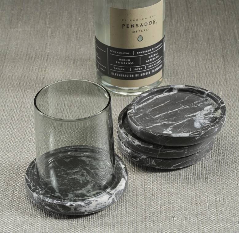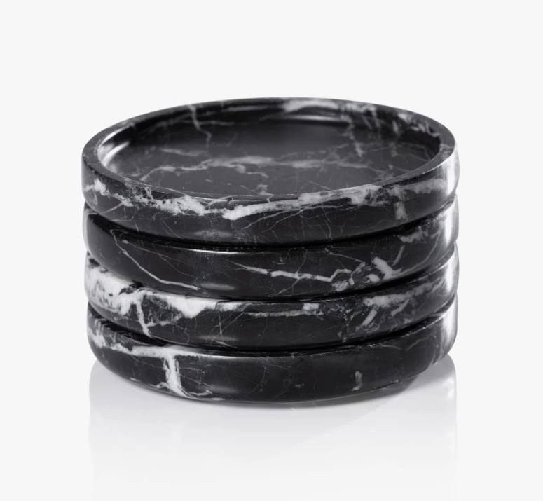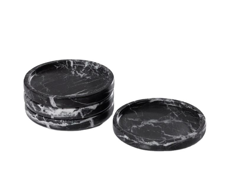Ensemble de 4 sous-verres en marbre noir, sous-verres en pierre naturelle écologiques, accessoires de table de luxe, accessoires de bar, café, cocktail