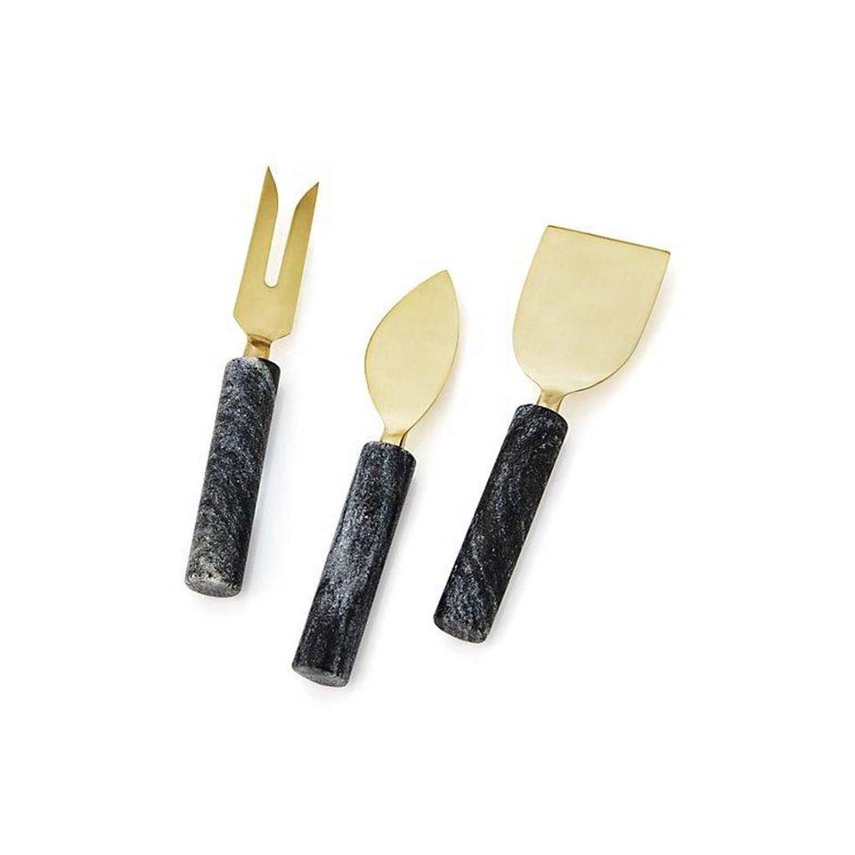 Trancheuse à fromage dorée à poignée ronde en marbre noir, ensemble d'éplucheurs de beurre et d'éplucheurs en acier inoxydable