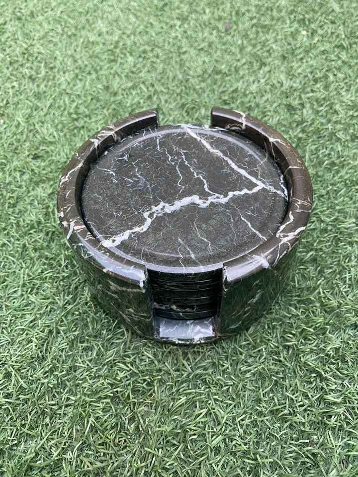 Ensemble de dessous-de-verre en marbre noir zébré, faits à la main avec support, dessous-de-verre en pierre naturelle