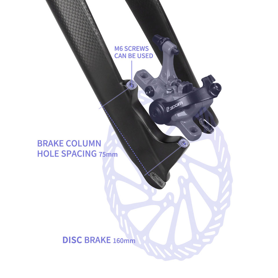 Fourche rigide noire mate 3K haut de gamme en carbone intégral pour vélo avec freins à disque