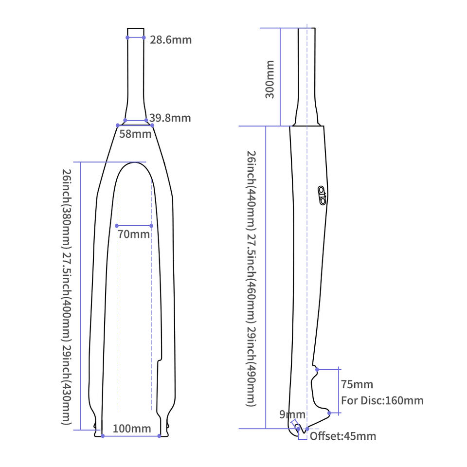 Fourche rigide VTT 26 / 27.5 / 29 poucesType