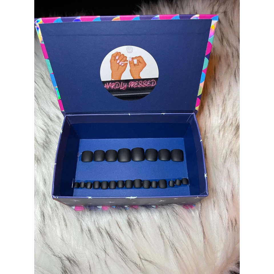 Ensemble de 24 faux ongles noirs mats à presser sur les orteils