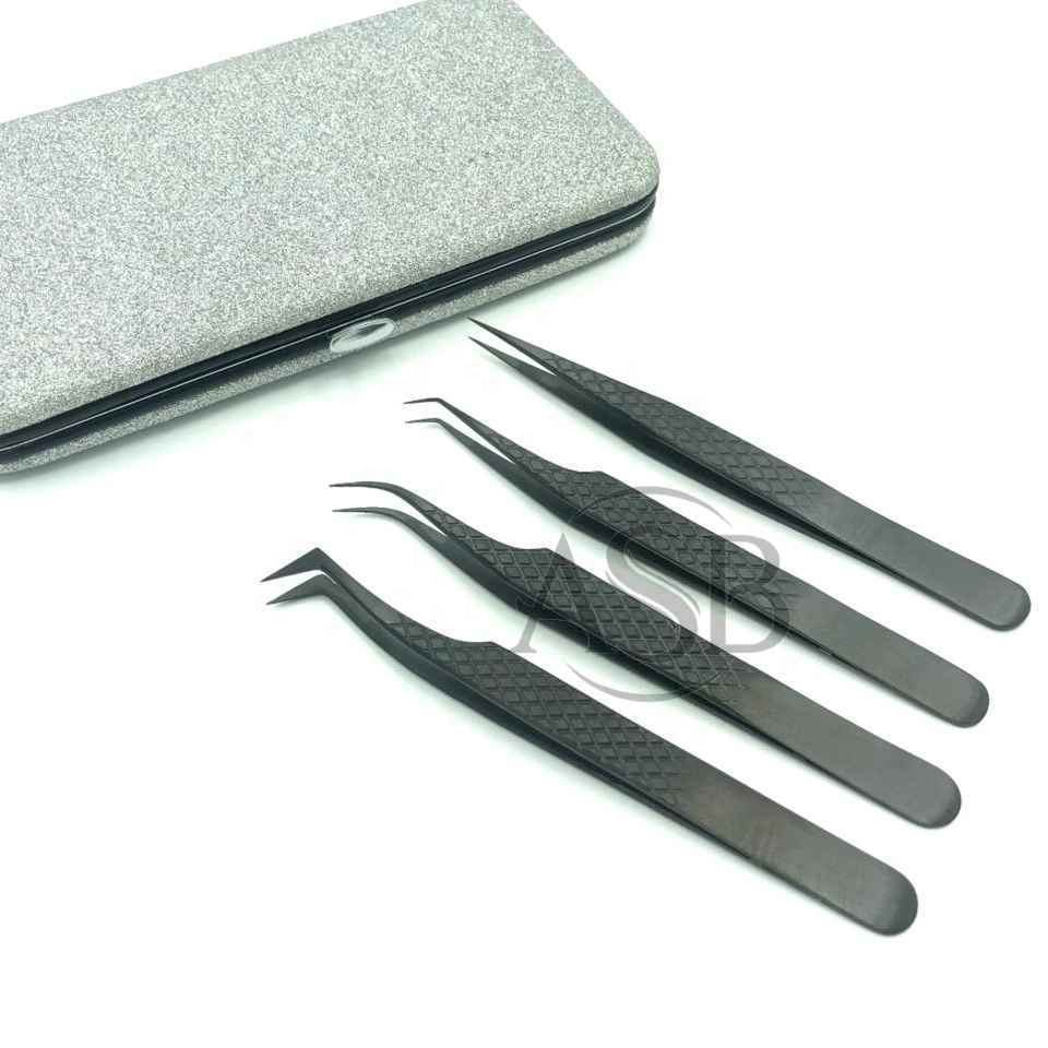 Pince à cils professionnelle noire mate de haute qualité en acier inoxydable, pince à extensions de cils droite et en forme de L pour volume