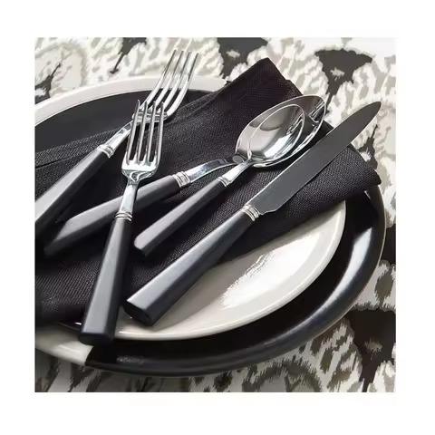 Ensemble de couverts en acier inoxydable moderne argenté poli avec manche en résine noire mate pour les fêtes