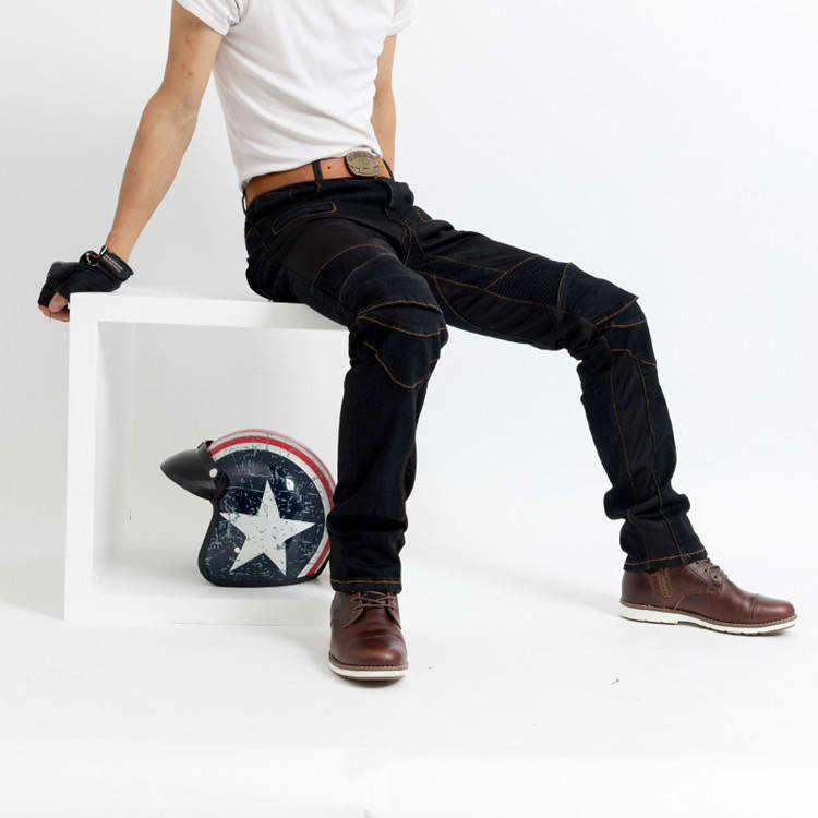 Black Mens Motorcycle Biker Jeans Removable CE Armor Aramid Lining Breathable Knee Hip Protection Safety Riding Gear Denim Pants