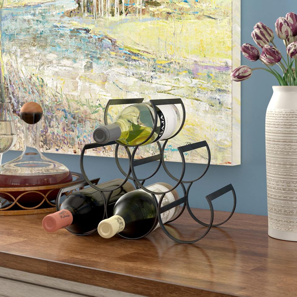 MR HANDICRAFT Porte-bouteilles à vin carré en métal noir rayé, support de table pour 6 bouteilles, présentoir à vin moderne en fer, capacité de 3L