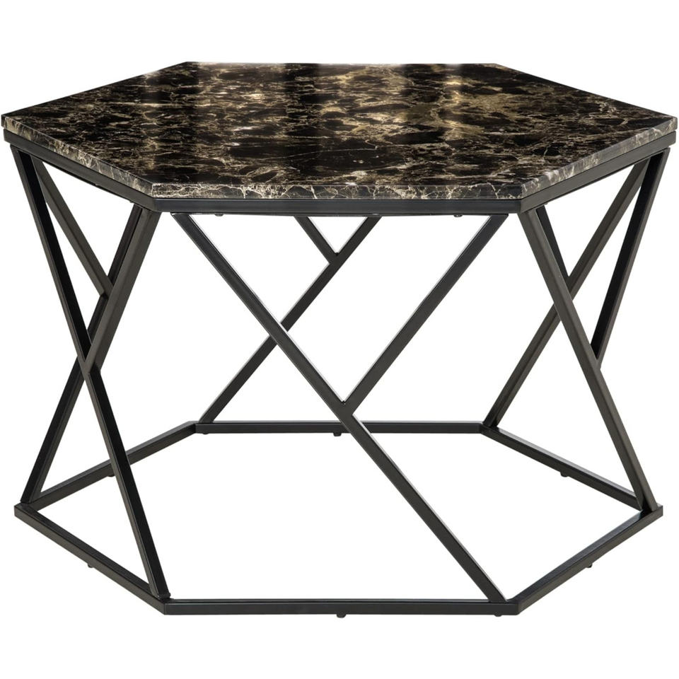 Cadre en métal noir et table d'appoint en bois, table basse pour salon, table basse latérale d'hôtel et de restaurant