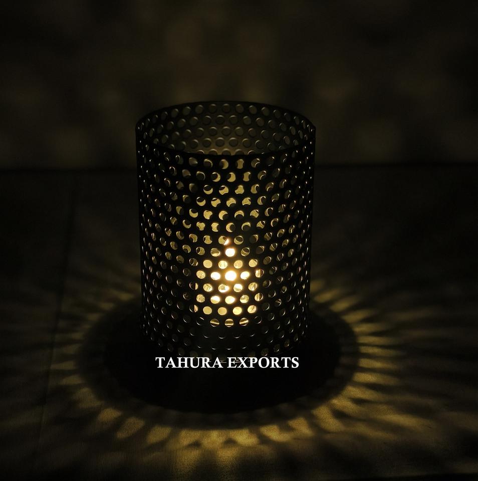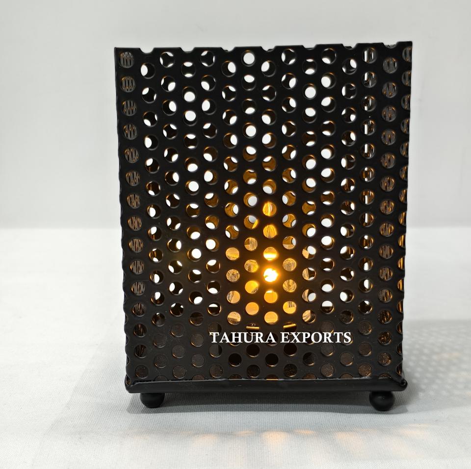 Bougeoir en filet en métal noir pour décor de chambre minimaliste avec un look moderne simple et un éclairage doux pour une atmosphère de soirée confortable
