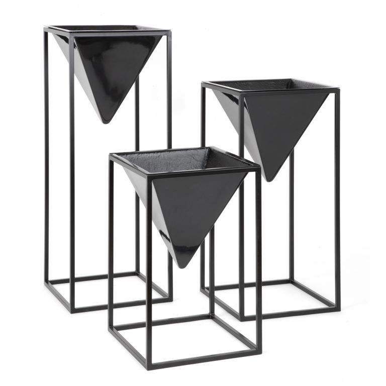 Élégant support de présentation en fer galvanisé noir pour plantes d'intérieur et de jardin, pots de fleurs, jardinières METAL WAVE, durable et léger