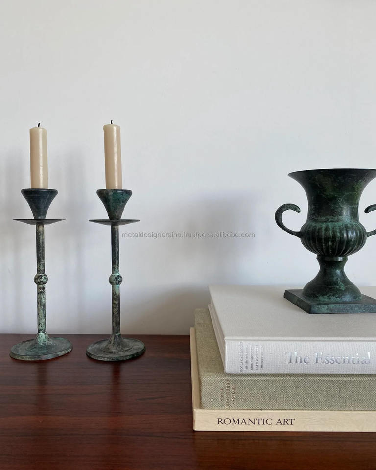 Bougeoir lavé vert de conceptions de tige de fer simples en métal noir avec la fête de mariage d'autres bougeoirs lanternes et pots de bougie