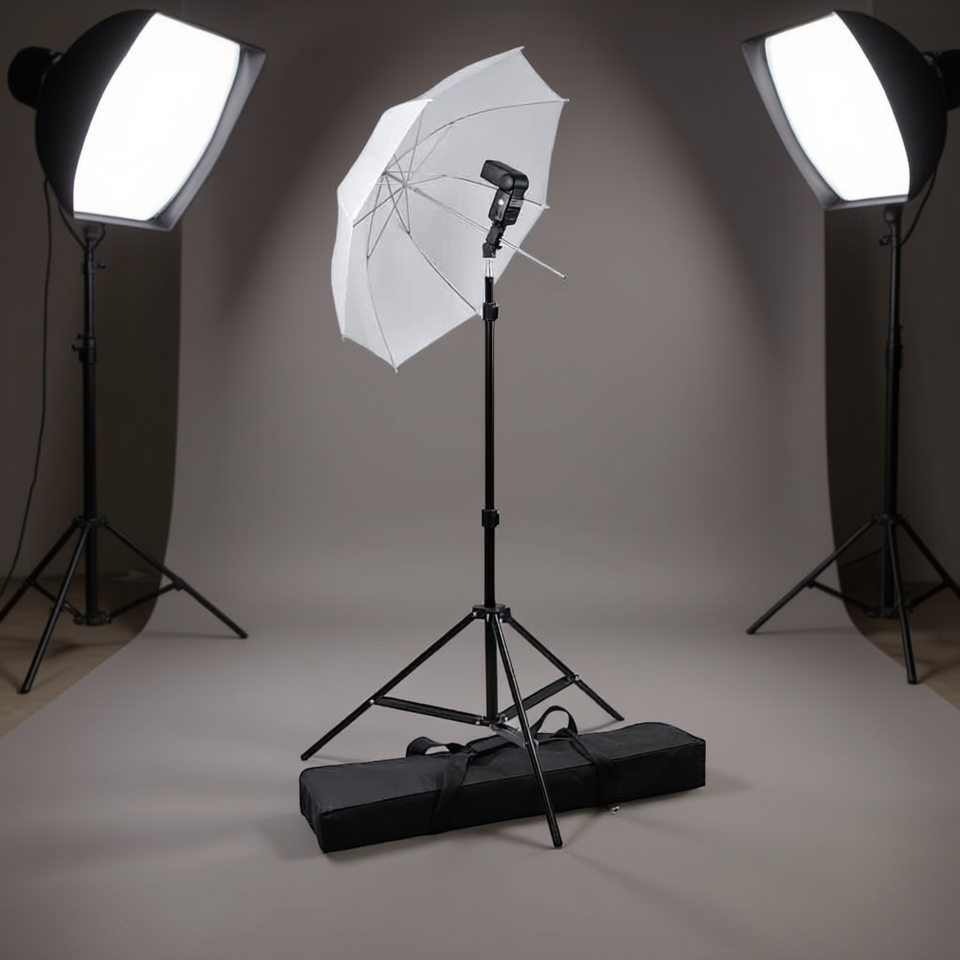 Kit Flash Professionnel avec Support Réglable en Hauteur, Construction Métallique, Alimentation par Batterie pour Studio Photo