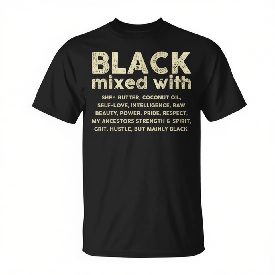 T-shirt noir avec mélange de beurre de karité et d'huile de coco pour femmes et hommes, vêtements promotionnels