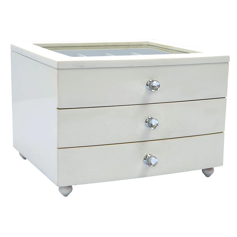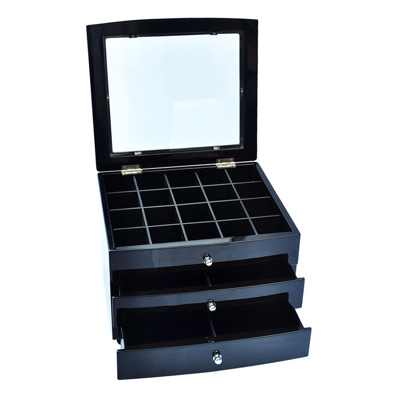 Boîte à bijoux noire multicouche avec miroir intégré | Organisateur à 2 tiroirs pour bagues/boucles d'oreilles/colliers