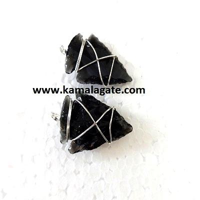 Black Obsidian Crystal Pendant Wire Wrapped Arrowhead Point Gemstone Jewelry Fashion Pendants & Charms for Sale